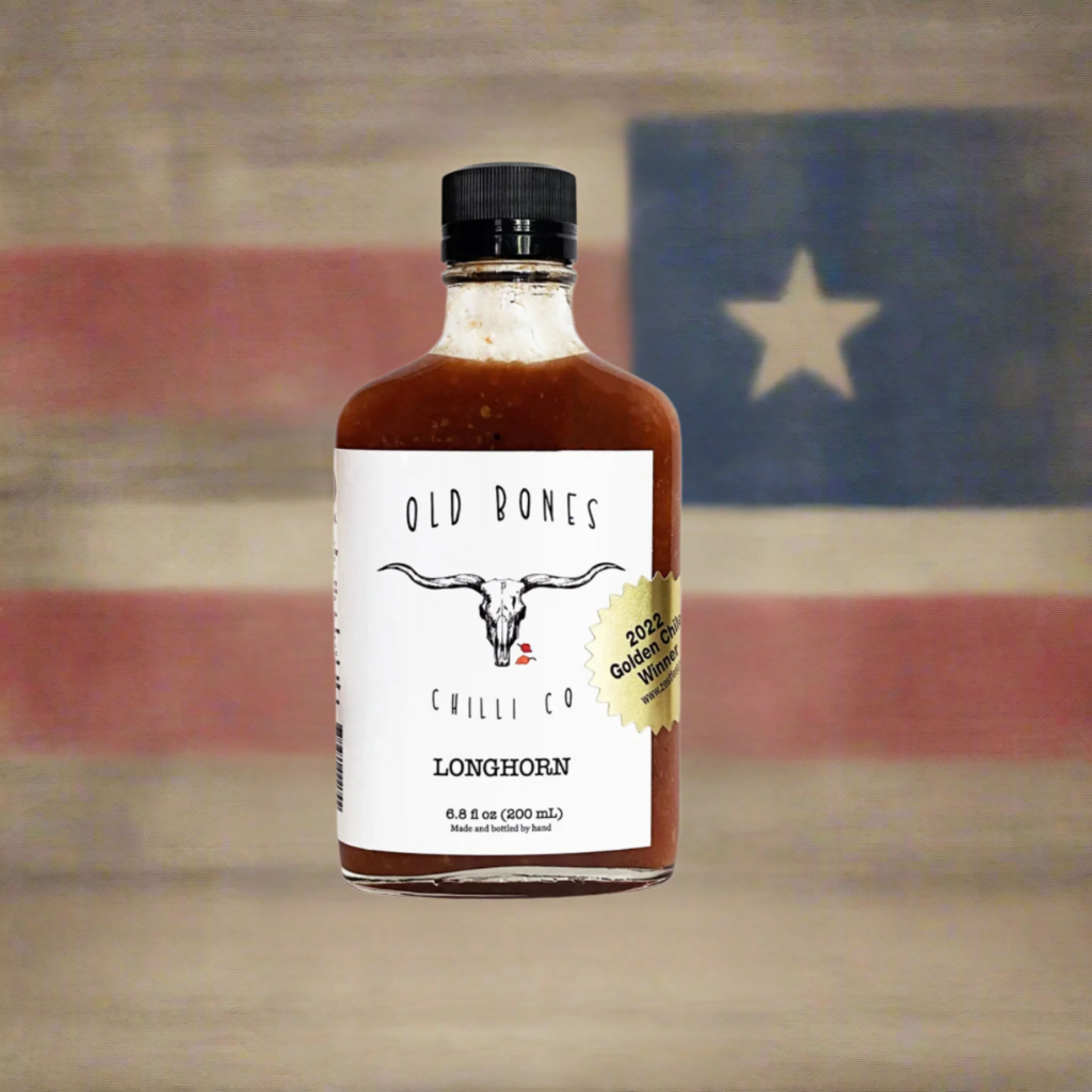 Nous avons créé cette sauce très épicée en édition spéciale pour le Hops n' Hot Sauce Festival 2022 à Houston, au Texas. Long Horn est une sauce à cinq piments qui est complexe, chaude et extrêmement savoureuse ! - cette sauce n'est pas pour les âmes sensibles ! Dans la véritable tradition d'Old Bones, nous avons élaboré un mélange parfaitement fumé de Carolina Reapers, de deux types de Habanero, de Cayenne et de piments Criolla - équilibrée avec une forte saveur d'ail, c'est une sauce pleine de saveur avec un coup de fouet !